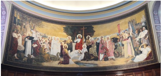 Regardez la fresque que nous avons sous les yeux et nous présente les saints qui ont fait notre histoire :
