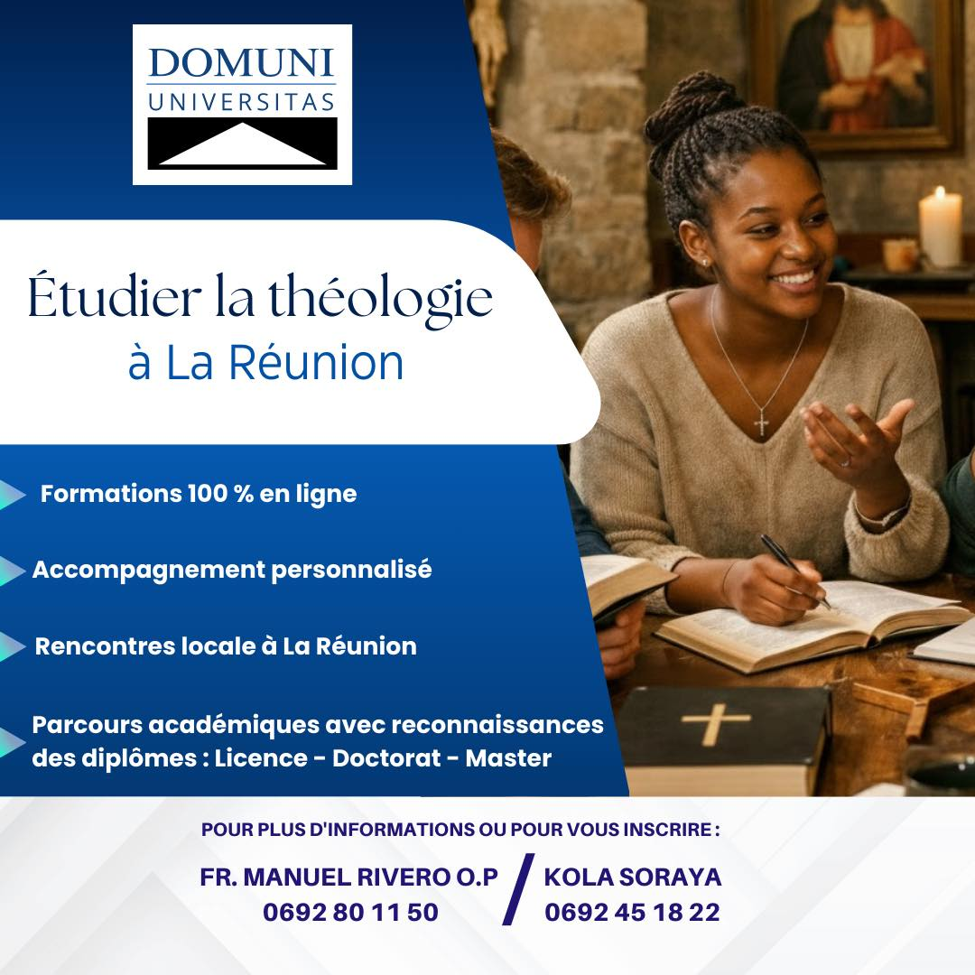 Nous n’avons pas à La Réunion de faculté en théologie, mais grâce à « DOMUNI-universitas », il est possible d’approfondir le mystère de Dieu et de grandir dans l’intelligence de la foi.